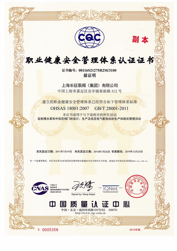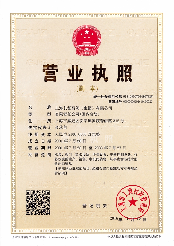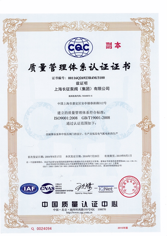上海長征泵閥(集團)有限公司引進了先進數控機床、加工中心、大型立車、臥式鏜床、國家B等級水泵廠家測試中心、國內一流離心泵生產設備。以下是公司部份資質,點擊可放大查看。